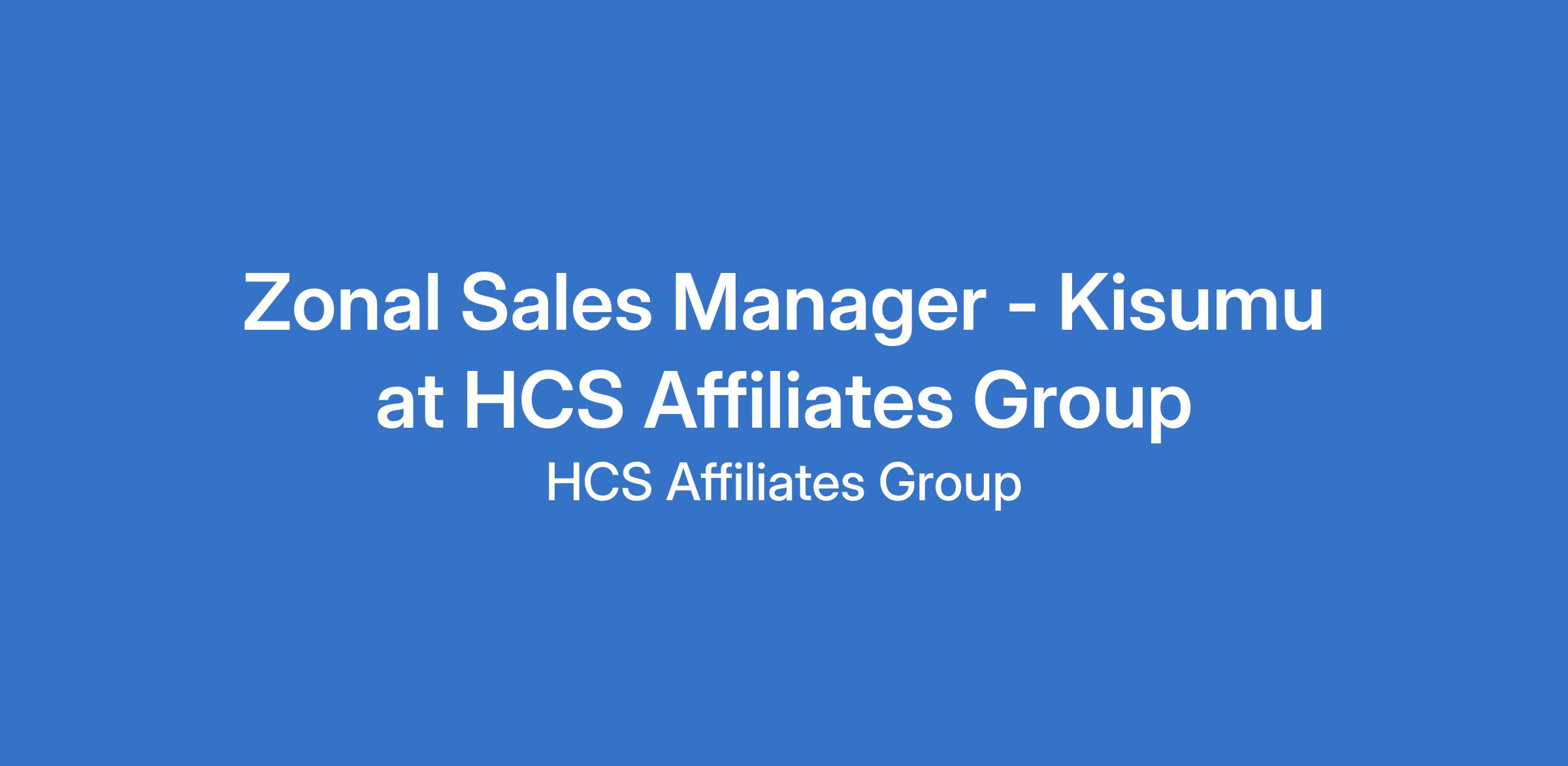 Applicants who meet the requirements stated above should send their application letter, Expected salary and detailed CVs with a day - time Telephone number to the email address: jobs1@hcsaffiliatesgroup.com with Zonal Sales Manager - Kisumu on the Subject line.