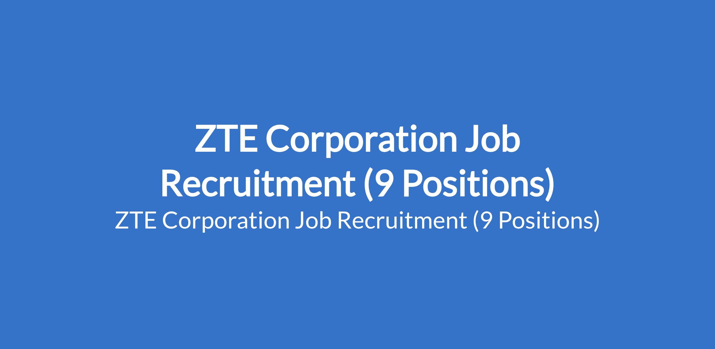 ZTE Corporation is recruiting suitably qualified candidates to fill the following positions in Lagos State: FTTH Project Quality Site Engineer, MTN FiberHome Sales Engineer, Regional Project Manager, FTTH Project Design Engineer, FTTH Project Material Control Manager, FTTH Project Site Engineer, FTTH Project Design Engineer, abd Fiber Splicing Engineer.