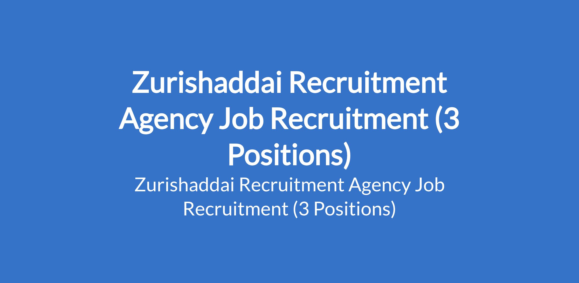 Zurishaddai Recruitment Agency Job Recruitment (3 Positions)